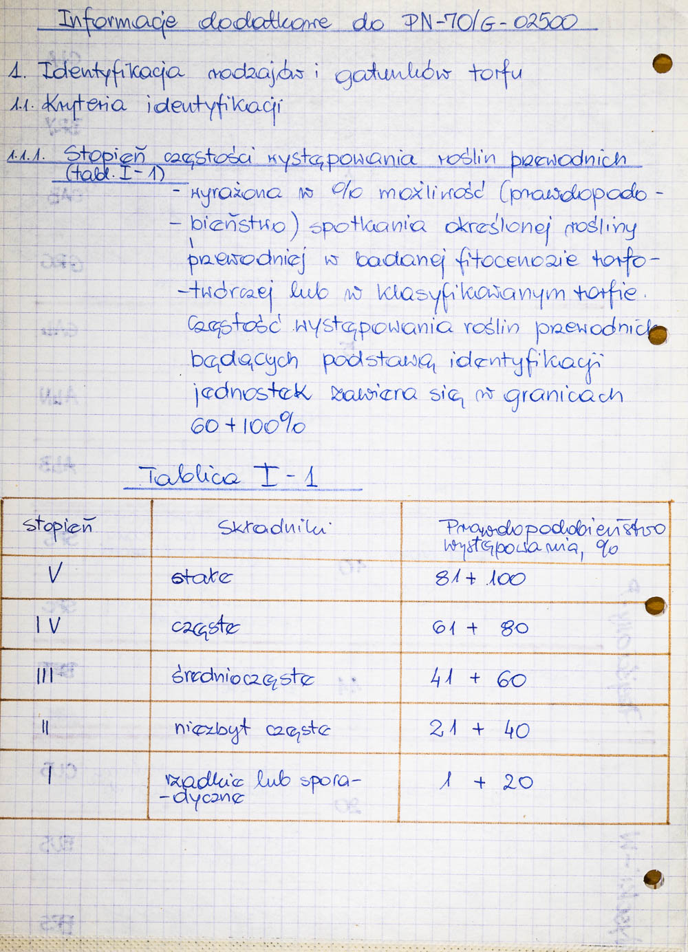 Tor, Norma Branżowa, oznaczenie stopnia rozkładu